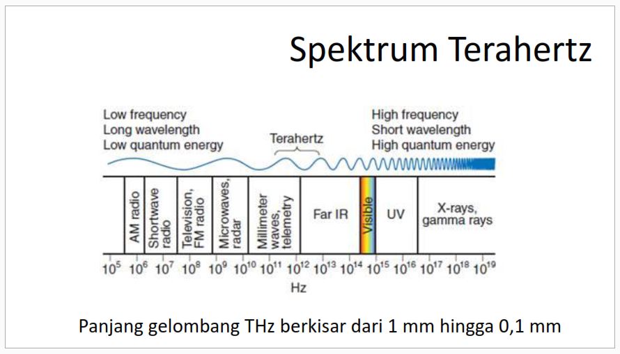 Panjang gelombang THz: sekitar 30 mikrometer – 3 milimeter, Frekuensi THz: 10¹¹ – 10¹³ Hz.