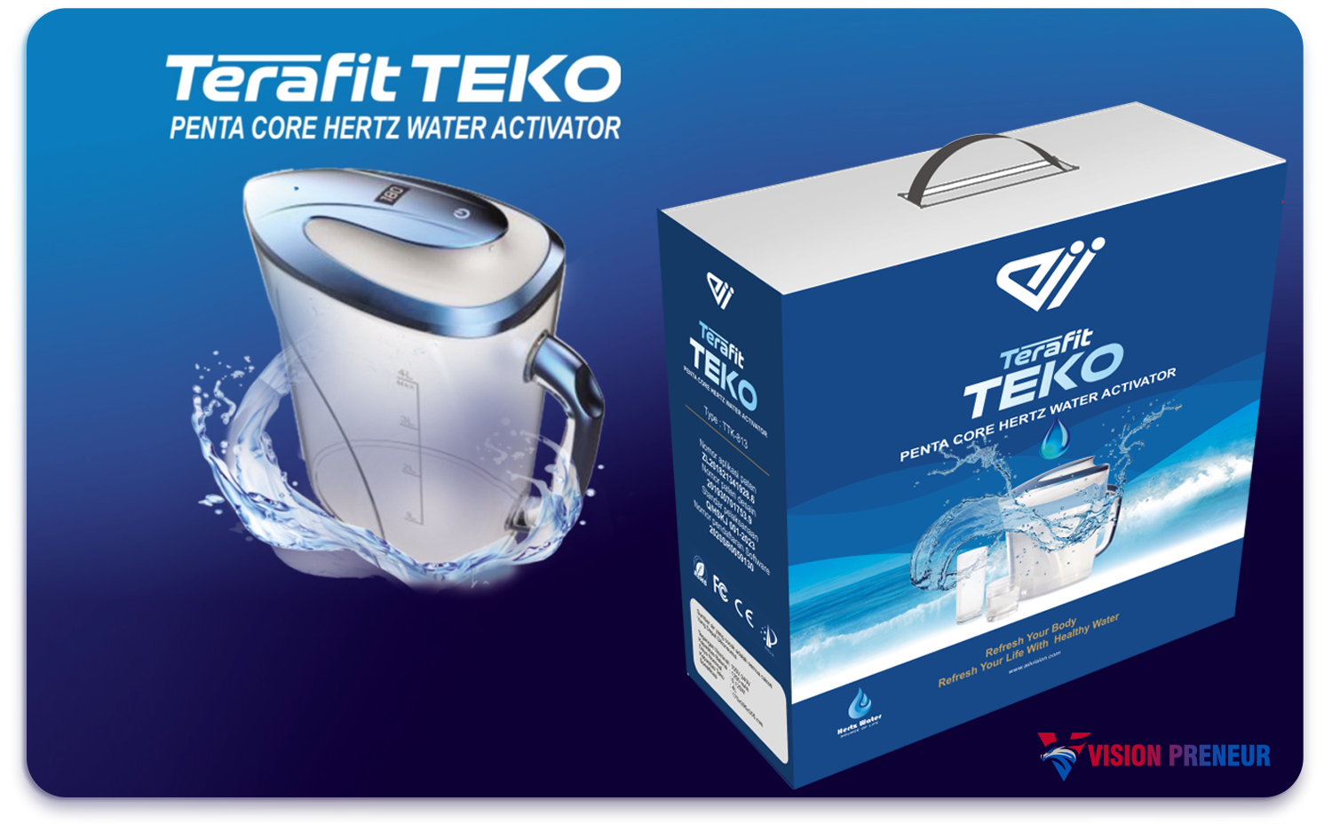 Prinsip Kerja : air minum yang disimpan atau dilewatkan pada medan THz strukturnya jadi lebih “teratur” (structured water).