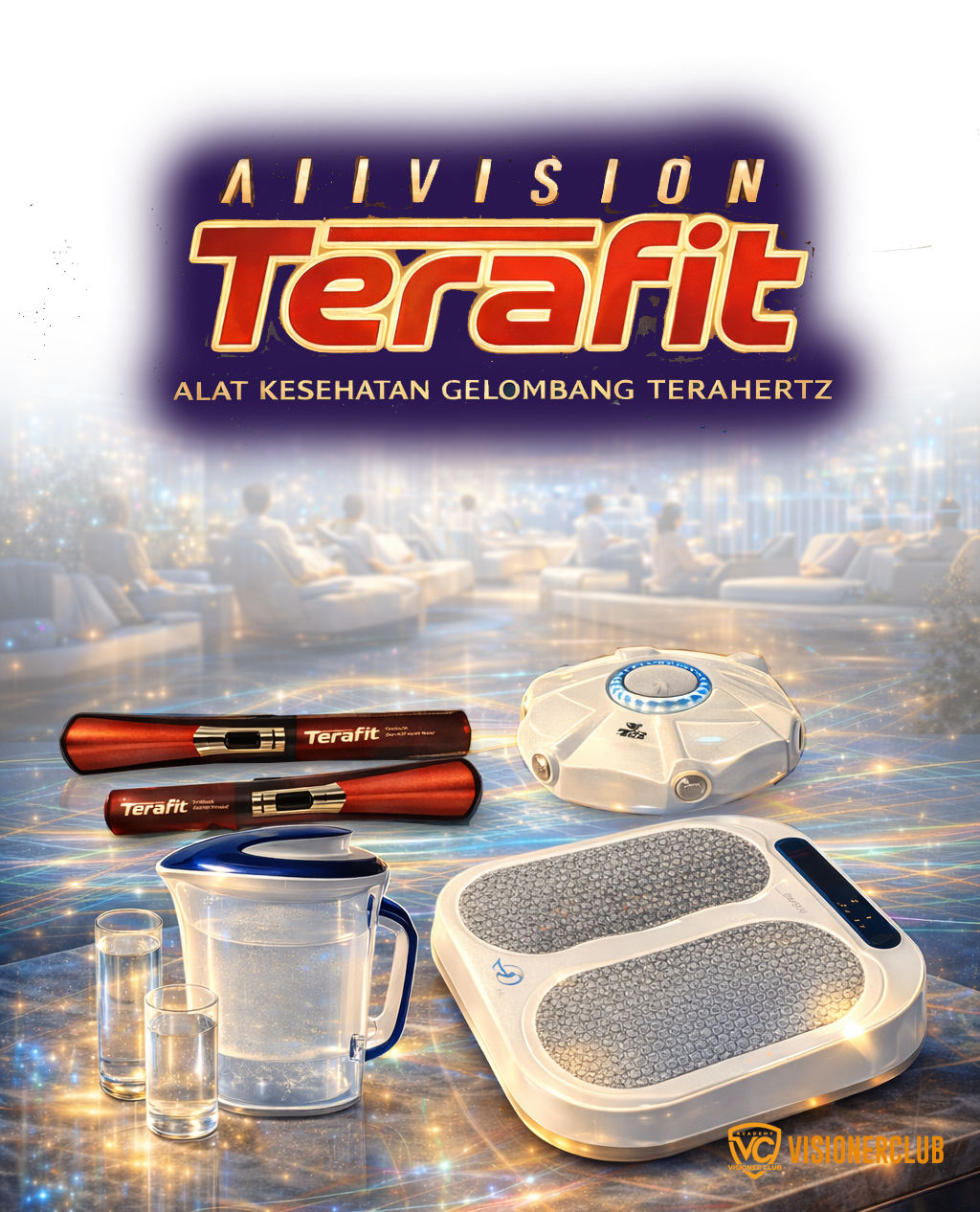 Prinsip Kerja : air minum yang disimpan atau dilewatkan pada medan THz strukturnya jadi lebih “teratur” (structured water).
