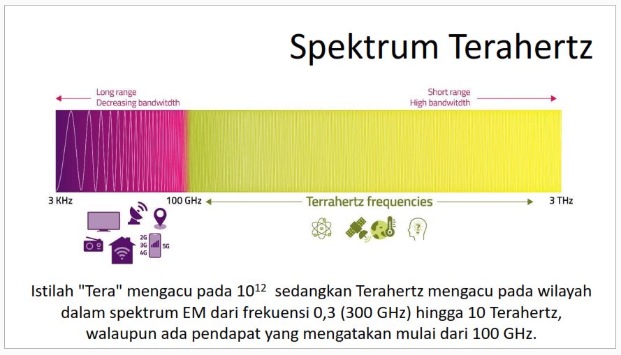 Panjang gelombang THz: sekitar 30 mikrometer – 3 milimeter, Frekuensi THz: 10¹¹ – 10¹³ Hz.